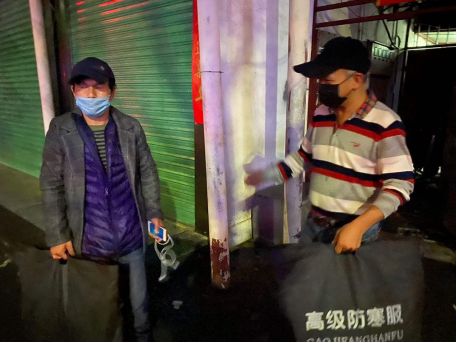 冒雨為轄區(qū)流浪人員送去口罩