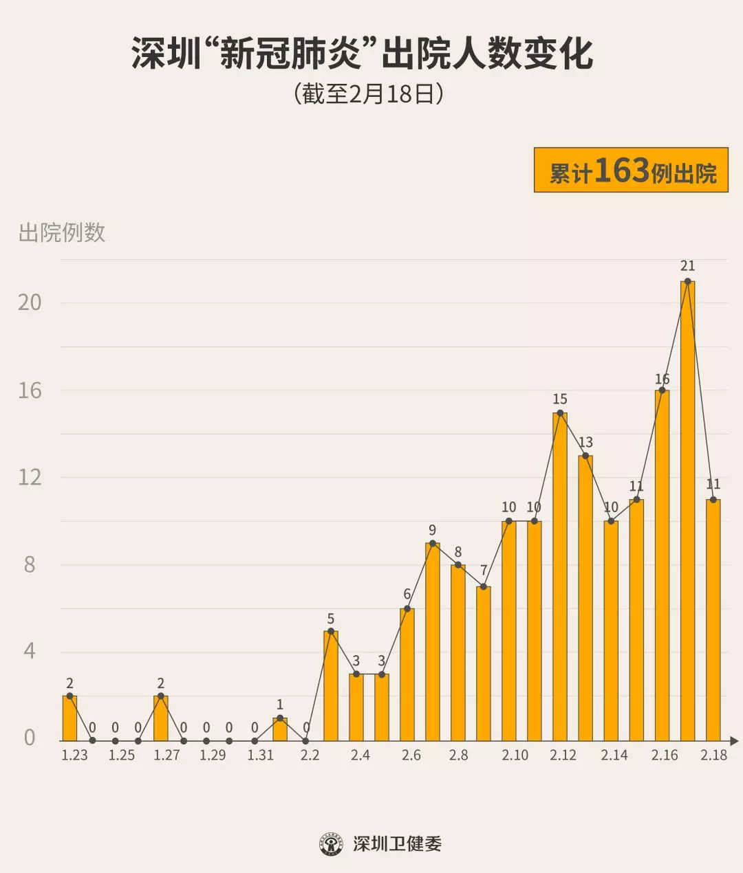 2月18日下午,經(jīng)專家組會診,深圳再有11名新型冠狀病毒肺炎確診患者出院,累計達163人,連續(xù)16天有人出院。