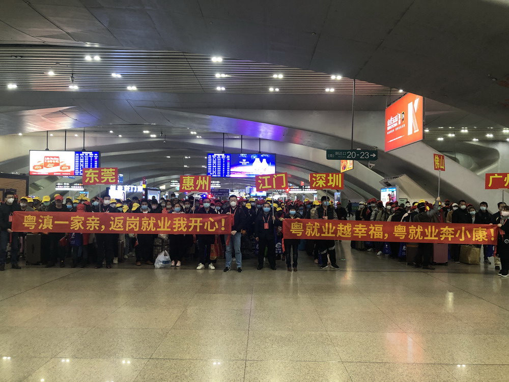 見圳客戶端·深圳新聞網(wǎng)2020年2月19日訊 2月18日14時36分,載有496名云南籍務(wù)工人員的D4856次列車從昆明南站開出,于當(dāng)日22時36分抵達廣州南站,全面拉開了省際協(xié)作組織異地務(wù)工人員節(jié)后有序返粵返崗的序幕。據(jù)悉,這是廣東省人社廳和云南省人社廳共同策劃,“點對點”訂制打造的首趟返粵專列,車上的乘客都是節(jié)前已在廣東就業(yè)的返鄉(xiāng)員工,分別來自云南昆明、曲靖、紅河、昭通等7個市州。雖然現(xiàn)在新冠肺炎疫情還未完全過去,但這496名務(wù)工人員將帶著政府免費提供的返崗專列“大禮包”,乘著憧憬與希望,分別前往廣州、深圳、佛山、東莞、惠州等市開始新一年的工作和生活。來自云南文山州的李先生在采訪中激動表示,自己已在廣東工作兩年多,廣東的就業(yè)環(huán)境好,這次能在政府幫助下免費回來上班,一路上還有人社部門工作人員帶隊指引,感到非常幸運,一定會好好珍惜,努力工作。