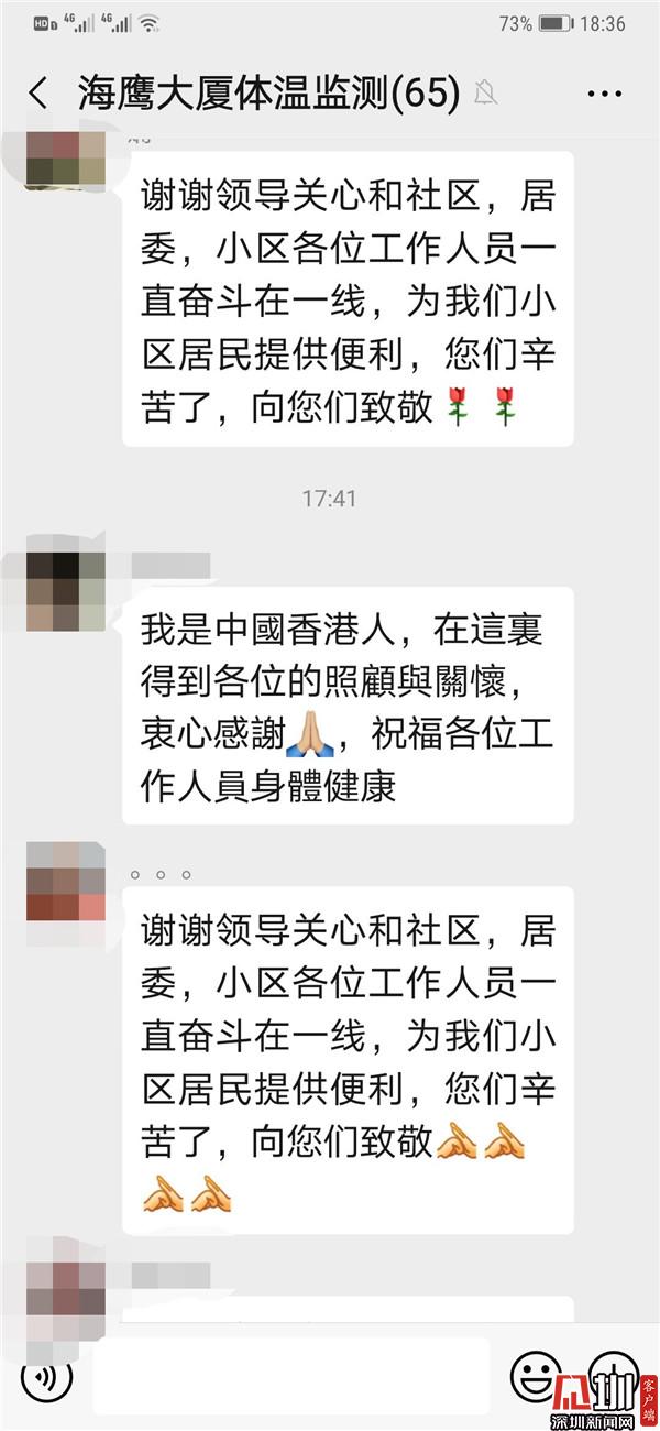 此外,在隔離期間,為方便與居民及時(shí)溝通,保障他們居家生活所需物資,東曉社區(qū)還專門建立了微信群,隨時(shí)了解海鷹住戶的生活需要和心理變化,以便及時(shí)做好應(yīng)對(duì),并及時(shí)向他們通報(bào)當(dāng)前防控最新進(jìn)展,盡全力保障他們的生活。