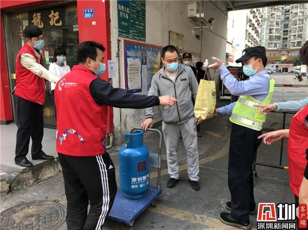 溫暖心連心,隔離不隔愛。在海鷹大廈大門口,深圳燃?xì)鈫T工運(yùn)來了一瓶煤氣,社區(qū)義工何洪斌在詢問得知是居家隔離戶的后,主動(dòng)聯(lián)系當(dāng)事人親自送上門。在硬隔離的14天日子里,像這種家門口的“義送”,何洪斌每天平均消耗步數(shù)1.2萬步。