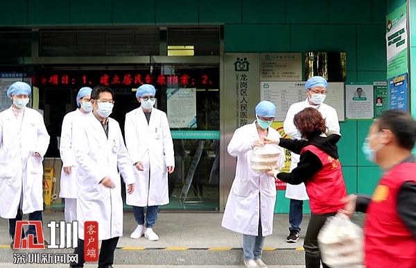 龍崗區(qū)人民醫(yī)院志愿者為社康中心工作人員送餐
