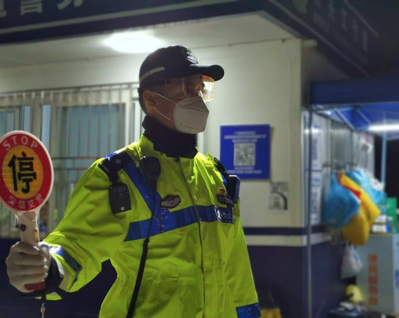 2月14日的凌晨,龍利正在廣深高速寶安收費站防疫檢查點執(zhí)勤,每一輛入深的車輛他都必須仔仔細(xì)細(xì)地攔截下來,核對信息,協(xié)助防疫工作人員給車上所有人測量體溫。