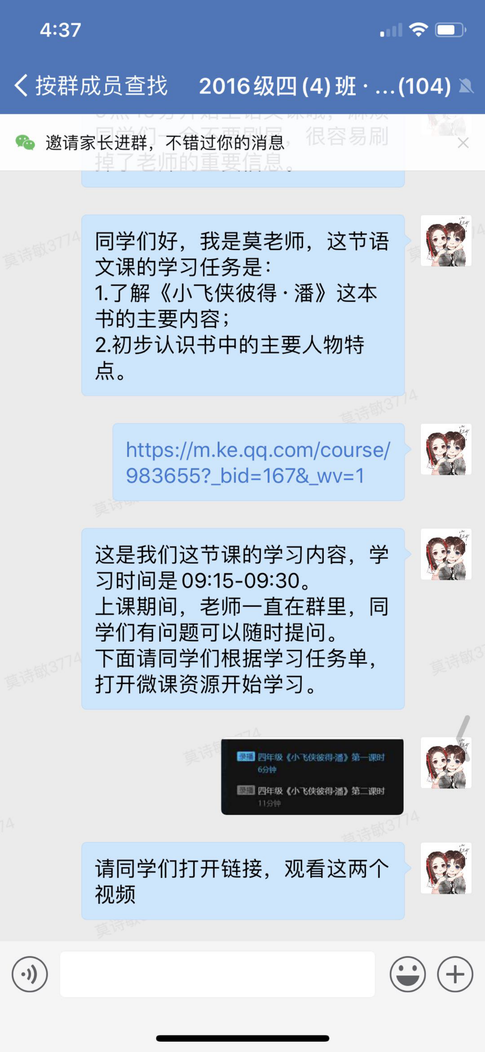 上課前,莫詩敏會(huì)在班級(jí)群里發(fā)學(xué)習(xí)任務(wù)單。