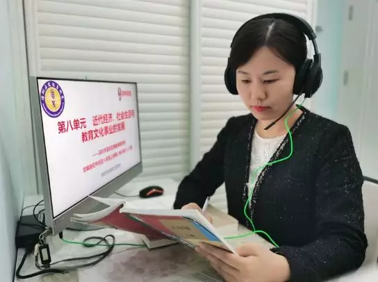 寶安區(qū)官田學(xué)校歷史老師劉紅玉在家錄制網(wǎng)課。寶安日?qǐng)?bào)記者宋璐攝