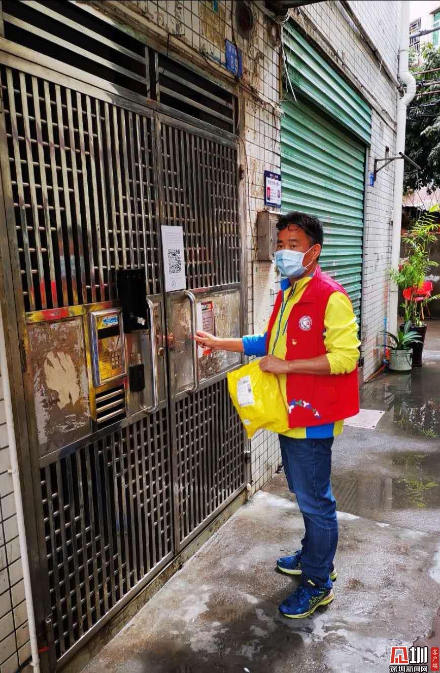 社區(qū)工作人員陳強上門為居家隔離住戶派送快遞