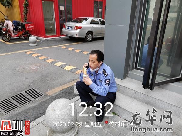做完返深隔離人員沿途消殺工作,早已錯(cuò)過(guò)飯點(diǎn),記掛著接下來(lái)的種種工作,他轉(zhuǎn)身去便利店買了個(gè)面包,坐在店門口的臺(tái)階上,隨便對(duì)付一下。簡(jiǎn)單潦草的一頓午餐,卻是他難得的歇息片刻。
