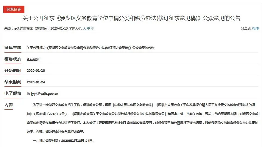 羅湖區(qū)在1月13日發(fā)布了《羅湖區(qū)義務(wù)教育學(xué)位申請分類和積分辦法(修訂征求意見稿)》向市民征求意見。