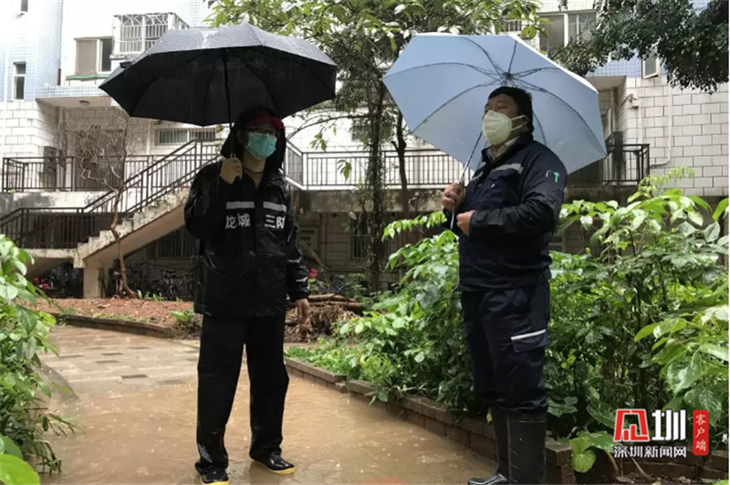 為打贏疫情阻擊戰(zhàn),愉園社區(qū)第一時(shí)間聯(lián)合愉園社康中心、新城派出所組建“三位一體”疫情聯(lián)防聯(lián)控工作組。2月13日,暴雨如注,陳科峰一大早剛剛帶著社區(qū)“三位一體”防控小組對(duì)一戶居家隔離人員完成核酸檢測(cè)。突然又想到和興花園小區(qū)老舊化糞池承載能力有限,今天下暴雨了更容易導(dǎo)致糞水溢出的危險(xiǎn),也不利于疫情防控。于是他馬上冒著大雨趕到現(xiàn)場(chǎng),和物業(yè)人員進(jìn)行溝通?!艾F(xiàn)在一下雨又能聞到刺鼻味道,必須找來抽水泵及時(shí)抽走!”站在一片積水中,陳科峰要求物業(yè)人員一定要做好接下來幾天暴雨來臨的準(zhǔn)備。他再三強(qiáng)調(diào),疫情之下,不能對(duì)居民生活造成不便。