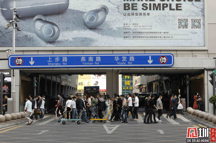 3月16日下午,華強北商圈的一條斑馬線上,人流量明顯增加。