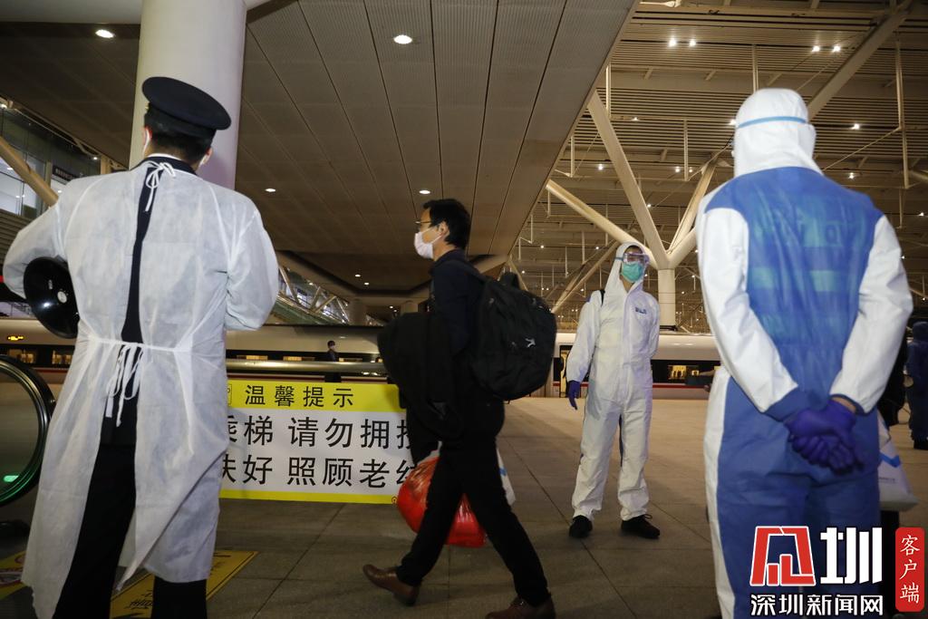 深圳北站客運(yùn)車間黨總支書記龔建力告訴記者,為了確保湖北返深專列安全??空九_(tái),深圳北站提前加強(qiáng)了清潔工作,并增派相關(guān)工作人員,確保返深湖北籍乘客有序安全出站。