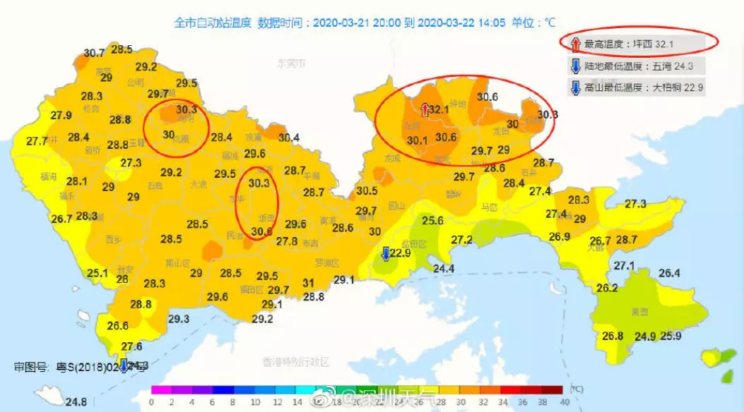 深圳有好幾個(gè)地方氣溫超過(guò)了30℃。