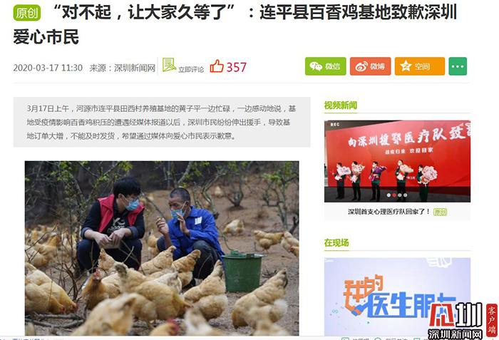深圳新聞網(wǎng)愛(ài)心助農(nóng)的報(bào)道推出后,得到深圳各界和愛(ài)心市民的踴躍參與,大家紛紛通過(guò)報(bào)道中公布的微店訂購(gòu)愛(ài)心雞。突然猛增的訂單,讓連平農(nóng)民感動(dòng)的同時(shí),也倍感壓力,因?yàn)榘傧汶u都是現(xiàn)殺現(xiàn)寄,全程冷鏈配送,所以導(dǎo)致有些訂單滯后。3月17日,連平農(nóng)戶還通過(guò)深圳新聞網(wǎng)向深圳愛(ài)心市民發(fā)出致歉信--《“對(duì)不起,讓大家久等了”:連平縣百香雞基地致歉深圳愛(ài)心市民》,通過(guò)深圳新聞網(wǎng)向深圳愛(ài)心市民表示謝意的同時(shí),又表達(dá)歉意。