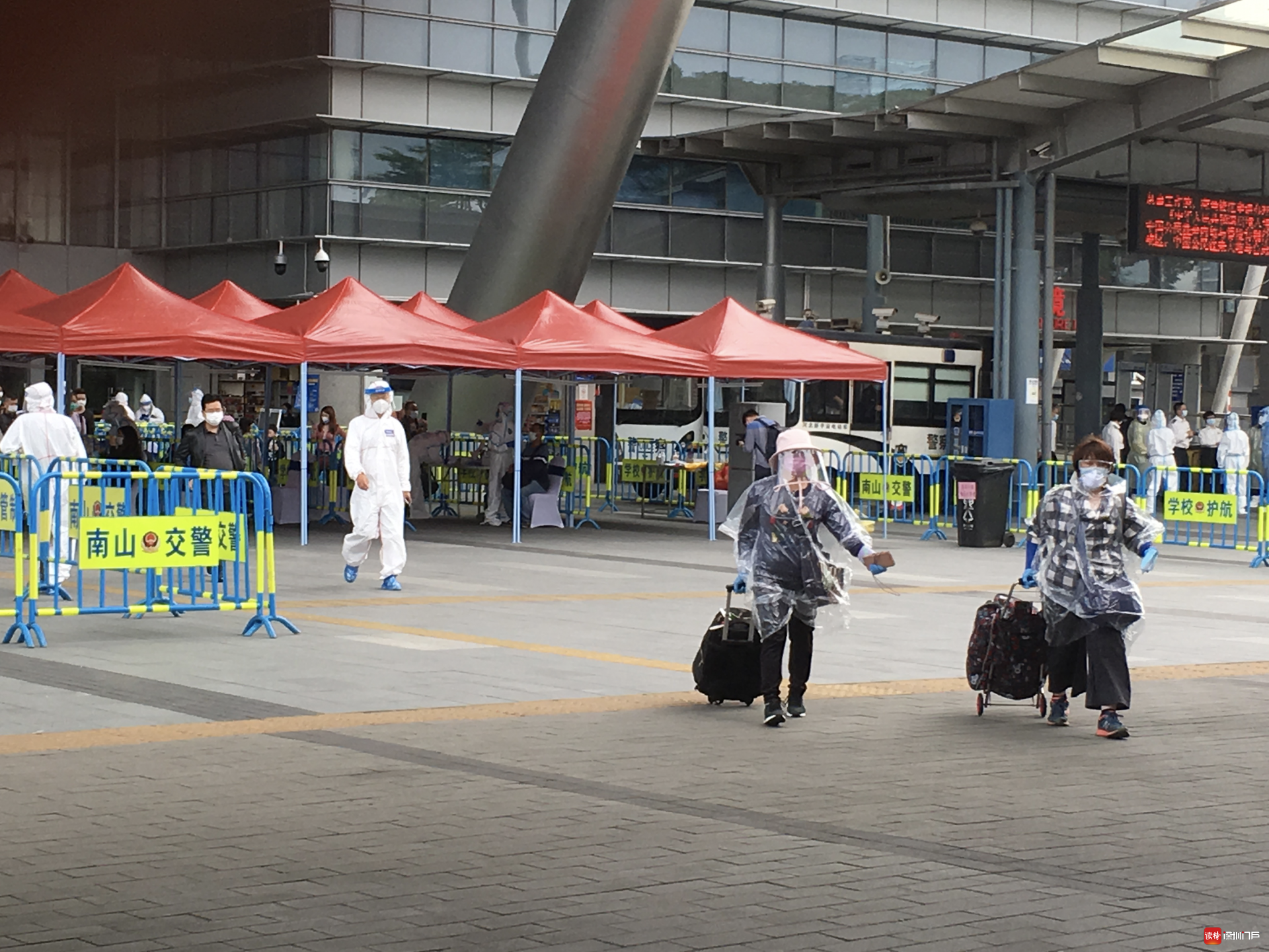 “排隊排了好幾個小時,終于出來了!”頭戴帽子、護目鏡和口罩,外加一襲透明“雨衣”的趙女士把自己包裹得嚴嚴實實,走到深圳灣口岸北廣場外才把帽子摘了,額頭微微出汗。她告訴記者,上午10點鐘她從香港出境,直到下午2點才通關(guān)。香港居民鐘先生是一名大學生,因老家有事才入境,他比趙女士要幸運一些,從11點開始通關(guān)的他花了2個多小時。