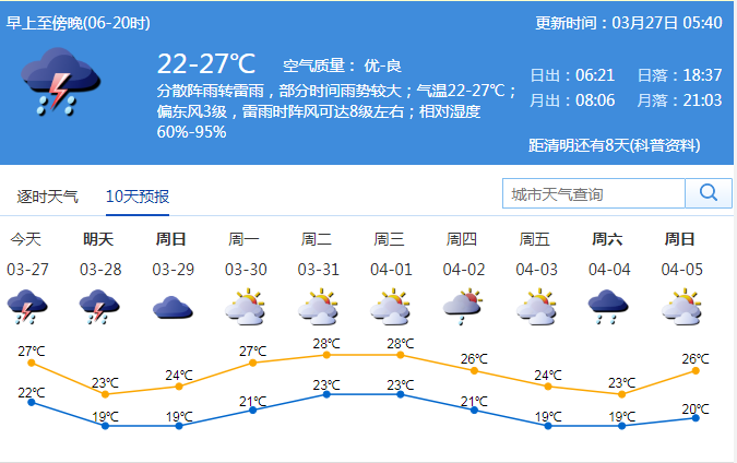 見圳客戶端·深圳新聞網(wǎng)3月27日訊 當前,我市進入強降雨和強對流天氣多發(fā)季節(jié)。氣象部門預計,27-28日受高空槽和冷空氣影響,有一次雷雨過程,并伴有短時強降水和8-9級短時大風等強對流天氣,28日氣溫下降3℃左右;29日云量較多,有分散小雨。市防汛防旱防風指揮部辦公室昨天發(fā)出通告,提醒各區(qū)、各有關單位提前做好局地強對流天氣防范工作。