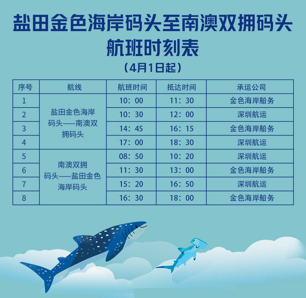 “鹽田-南澳”海上交通往返航班4月1日起恢復到每天8班