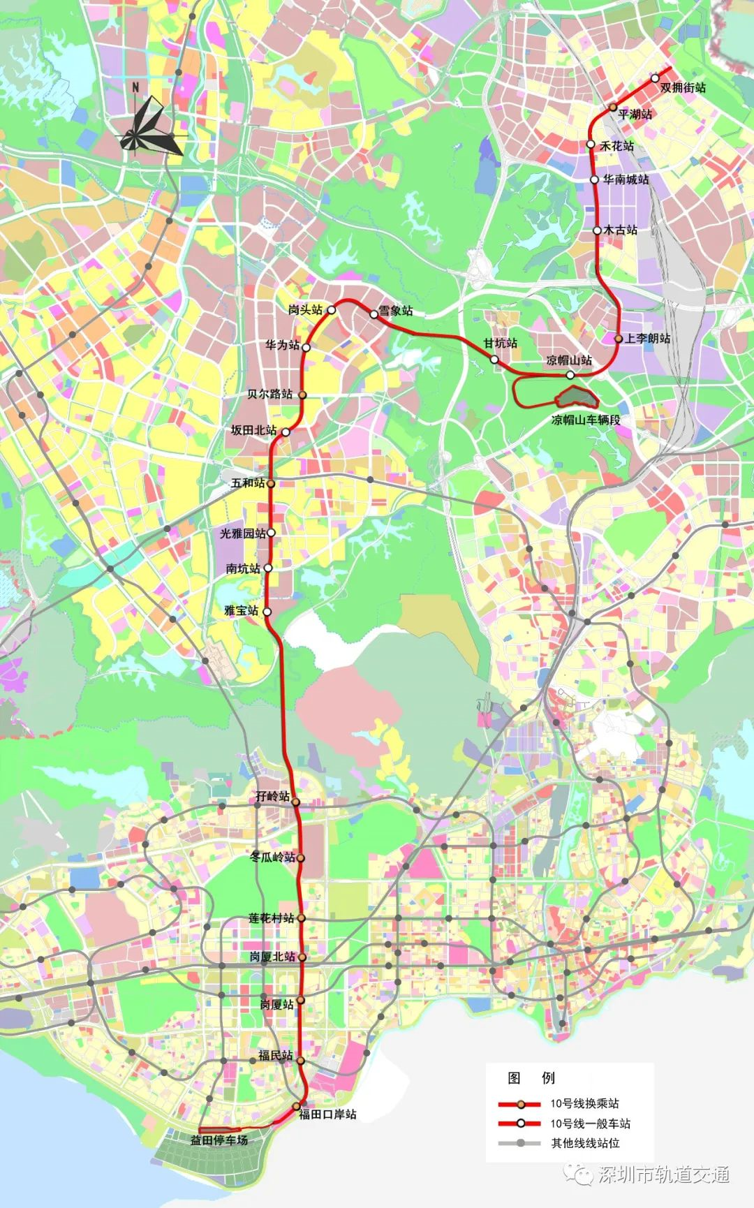 地鐵10號(hào)線屬于深圳市軌道交通三期工程項(xiàng)目,南連與香港毗鄰的福田口岸站,北接龍崗區(qū)的平湖樞紐。線路途徑福田口岸、福民、崗廈、崗廈北、蓮花村、冬瓜嶺、孖嶺、雅寶、南坑、光雅園、五和、坂田北、貝爾路、華為、崗頭、雪象、甘坑、涼帽山、上李朗、木古、華南城、禾花、平湖、雙擁街24個(gè)站點(diǎn),線路全長(zhǎng)約29公里,跨福田、龍華、龍崗區(qū)。截至目前,全線23個(gè)車站(除崗廈北站)已封頂。其中,影響全線開通初期運(yùn)營(yíng)的附屬結(jié)構(gòu)出入口、風(fēng)亭等需開挖基坑總數(shù)共計(jì)118個(gè),目前已完工116個(gè)。
