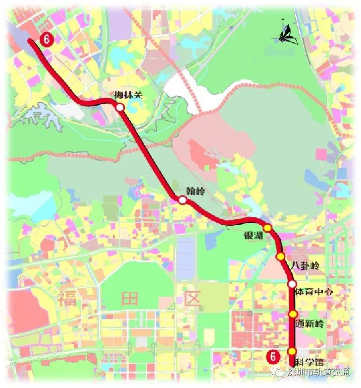 地鐵6號(hào)線二期線路自深圳北站預(yù)留高架橋工程引出,途徑龍華、福田、羅湖三區(qū),終于科學(xué)館站。線路途徑科學(xué)館、通新嶺、體育中心、八卦嶺、銀湖、翰嶺、梅林關(guān)7個(gè)站點(diǎn),線路全長(zhǎng)約11.8公里,包括7站7區(qū)間,換乘車站4座。可與已運(yùn)營(yíng)的地鐵1號(hào)線、3號(hào)線、7號(hào)線、9號(hào)線實(shí)現(xiàn)換乘。截至目前,二期安裝裝修完成99%,附屬主體結(jié)構(gòu)基本完成。