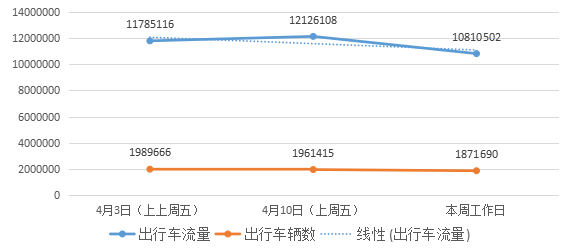 交警部門(mén)預(yù)計(jì),今天周五晚高峰,出行車(chē)輛的次數(shù)會(huì)依然處于高位。經(jīng)對(duì)15時(shí)至21時(shí)全市出行車(chē)輛情況統(tǒng)計(jì),4月3日(上上周五)全市出行車(chē)流量1178.51萬(wàn)輛次,出行車(chē)輛198.97萬(wàn)輛;4月10日(上周五)全市出行車(chē)流量1212.61萬(wàn)輛次,出行車(chē)輛196.15萬(wàn)輛。結(jié)合本周工作日全市出行車(chē)輛情況,深圳交警預(yù)計(jì)4月17日(本周五)全市出行車(chē)流量較工作日稍有增加,增加約9.34%,達(dá)1182.97萬(wàn)輛次。