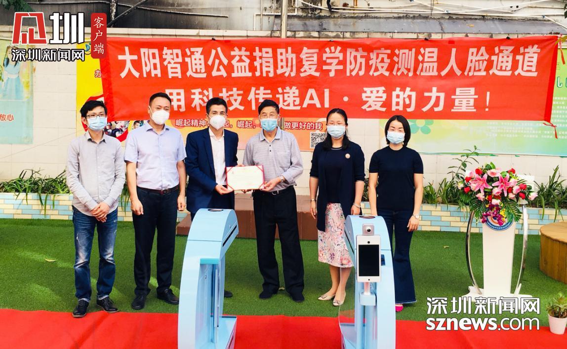 見圳客戶端·深圳新聞網(wǎng)2020年4月17日訊 (記者 潘寶儀 陳彬)4月16日下午,深圳市環(huán)陽通智能實業(yè)有限公司(以下簡稱“大陽智通集團” )向崛起教育集團的深圳市寶安區(qū)崛起誠信實驗學(xué)校和深圳市寶安區(qū)崛起第一幼兒園捐贈多套防疫測溫人臉識別通道,并舉辦公益捐助活動,助力學(xué)校全面復(fù)學(xué)。