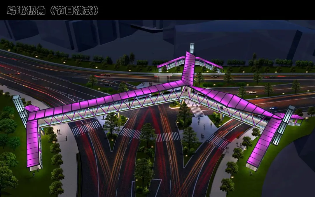 跨越南山區(qū)沙河西路,西接大沖片區(qū),東接沙河西生態(tài)長廊,橋長約113米,橋面凈寬約4.3米,主橋共4跨。天橋設(shè)計容景觀、造型、燈光、周邊環(huán)境于一體,設(shè)置無障礙觀光電梯,采用鋼箱梁及花崗巖面磚鋪裝、綠化自動滴灌等。天橋的建設(shè)將大大縮短居民繞行時間,對完善周邊居民出行環(huán)境具有重要意義。