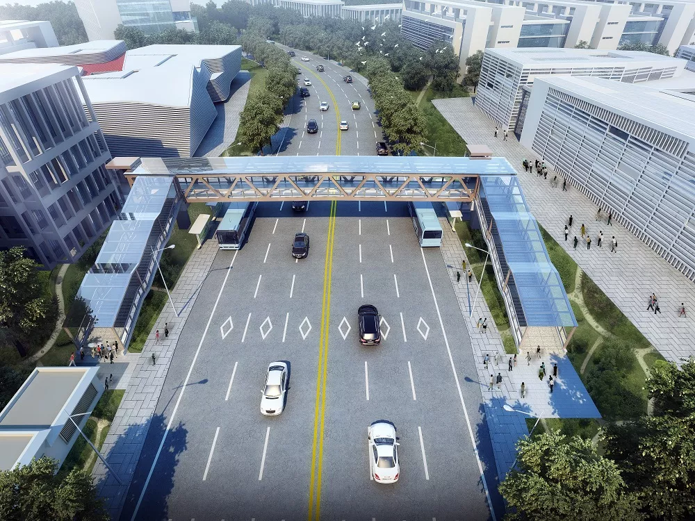 目前主體結(jié)構(gòu)已施工完成,進(jìn)入裝飾裝修施工。據(jù)悉,天橋預(yù)計(jì)今年8月完工通行。