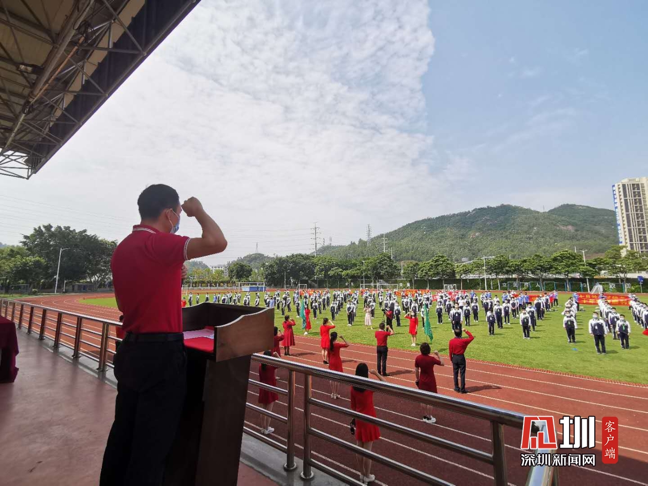 大鵬新區(qū)葵涌中學(xué)九年級全體學(xué)生進(jìn)行了宣誓,楊思同學(xué)則代表九年級學(xué)生鳴響學(xué)校鐘聲,鳴響全體考生對決勝中考的美好愿望。