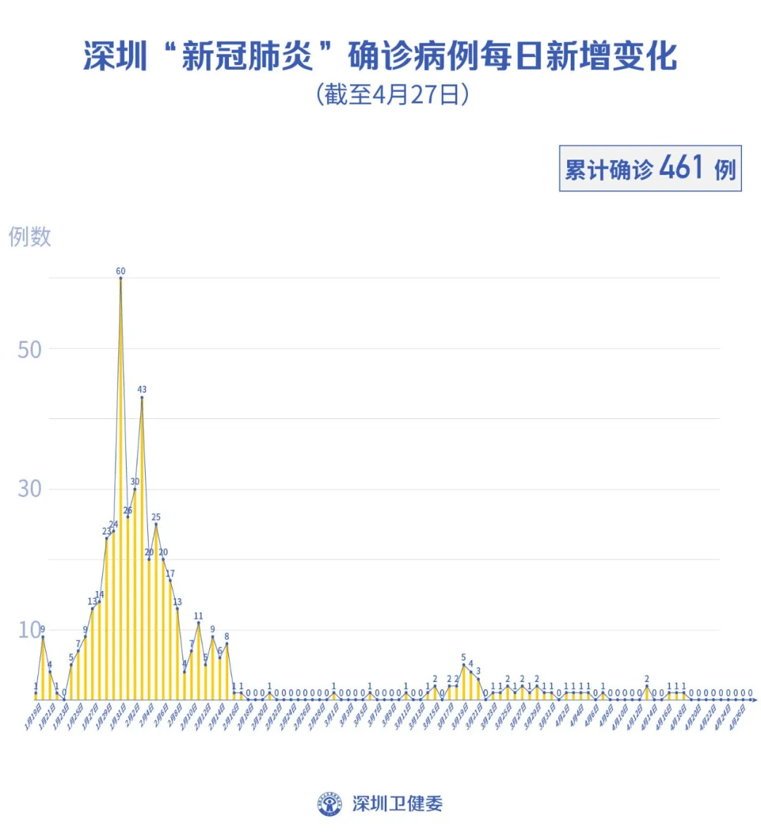 截至4月27日24時(shí),深圳累計(jì)報(bào)告新冠肺炎病例461例。4月27日當(dāng)天新增無(wú)癥狀感染者1例,出院1例。