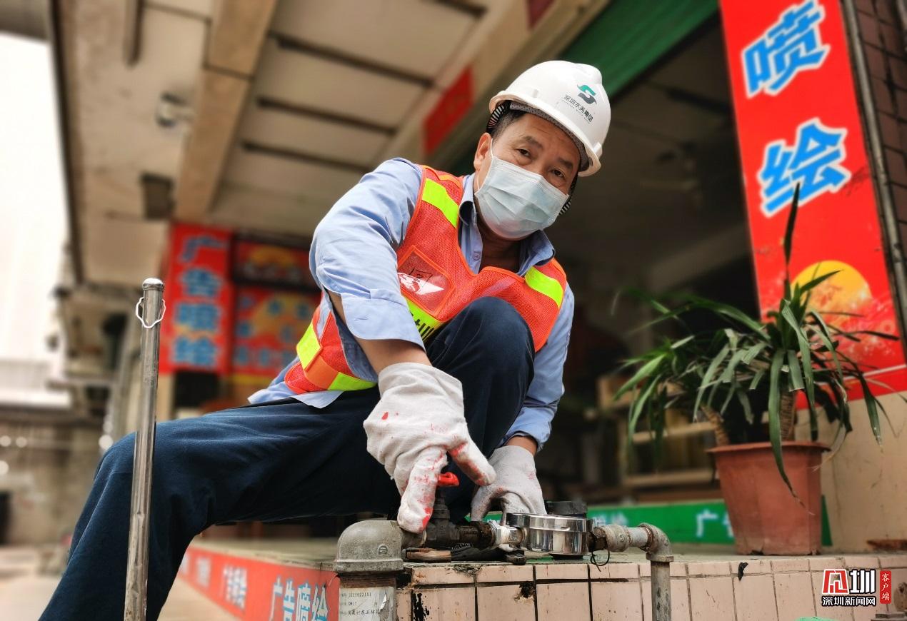 福田分公司福中水務(wù)所維修工陳國明,正對水表進行關(guān)停,準(zhǔn)備開始維修工作。