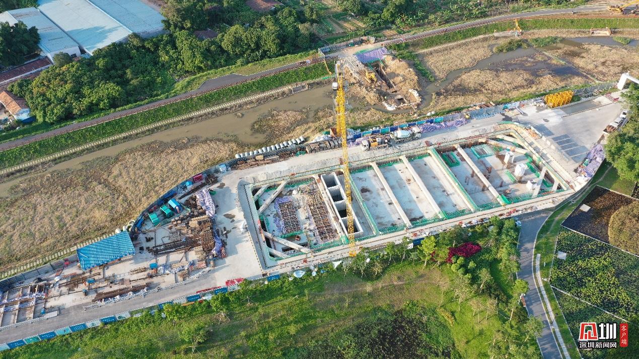 新陂頭干流調蓄池施工現(xiàn)場。為追趕進度,搶抓工期,光明 EPC消黑項目部爭分奪秒,全面向著完工節(jié)點出發(fā)。