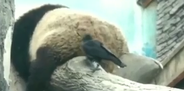 5月6日,有網(wǎng)友爆料,北京動物園有烏鴉在熊貓身后薅屁股毛。