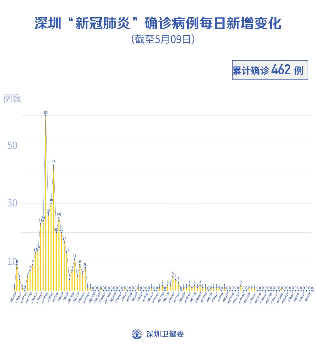截至5月9日24時,深圳累計報告新冠肺炎病例462例。