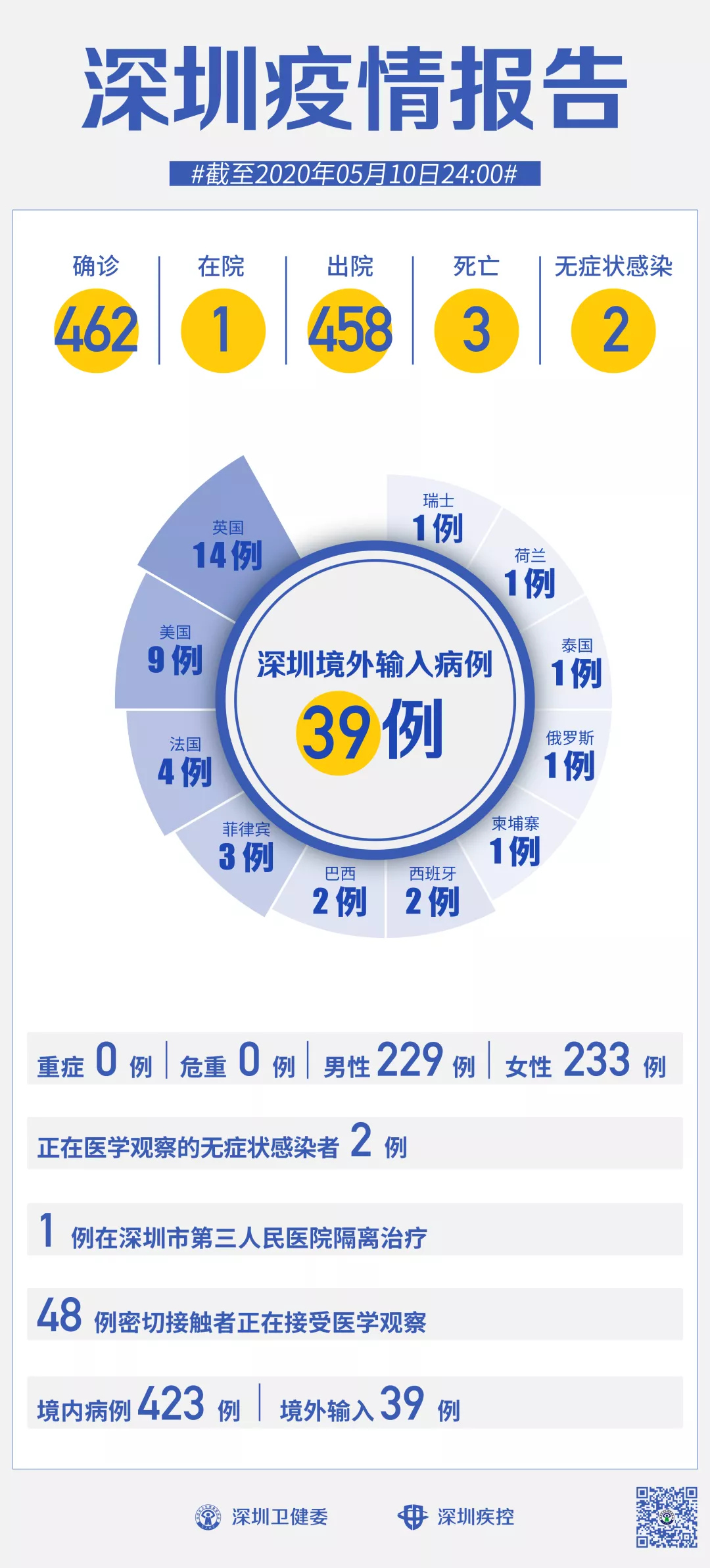 截至5月10日24時(shí),深圳累計(jì)報(bào)告新冠肺炎病例462例。