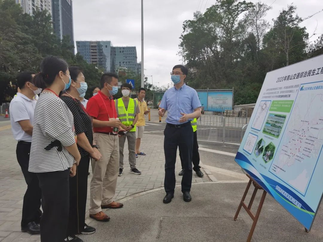 ▲體驗結(jié)束后,在調(diào)研現(xiàn)場,深圳市交通運輸局南山管理局相關(guān)負(fù)責(zé)人向區(qū)人大代表們講解今年南山交通綜治民生工程。消息報記者肖佩攝