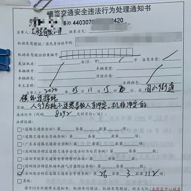 對該施工單位在橫坪連接線路段占道施工導致人行道不連貫、機非沖突,存在較大交通安全隱患的行為,龍崗交警依法處罰10000元并責令立即整改。