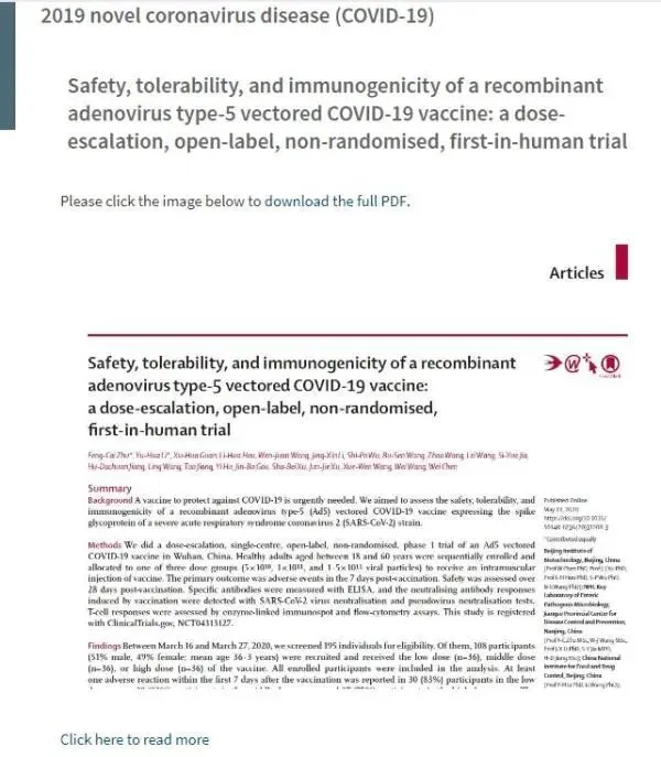 柳葉刀發(fā)布陳薇團隊疫苗試驗結(jié)果: