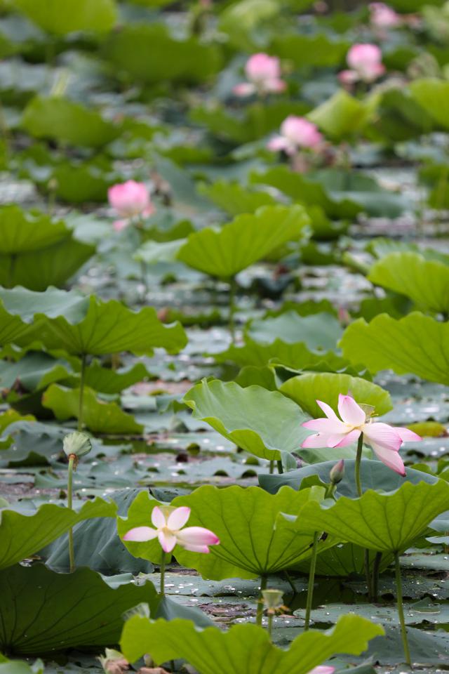 ▲公園內(nèi)主要荷花品種有粉色的"紅建蓮"和白色的"一丈青","紅建蓮"已大量盛開(kāi)。