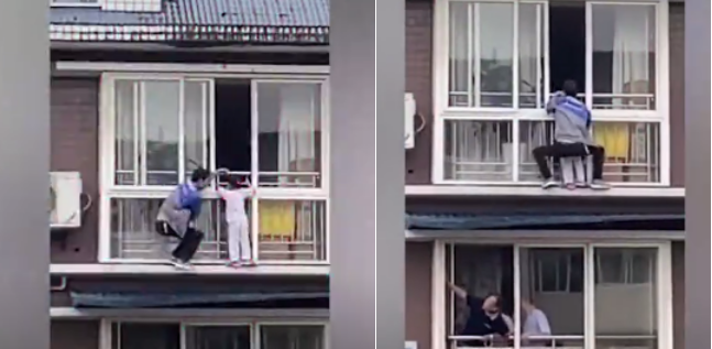 5月21日,四川富順縣一個5歲女童翻出6樓窗外,居民趕緊在樓下撐起被子,路過的小伙胡云川則從5樓陽臺爬到6樓把孩子塞回屋內。