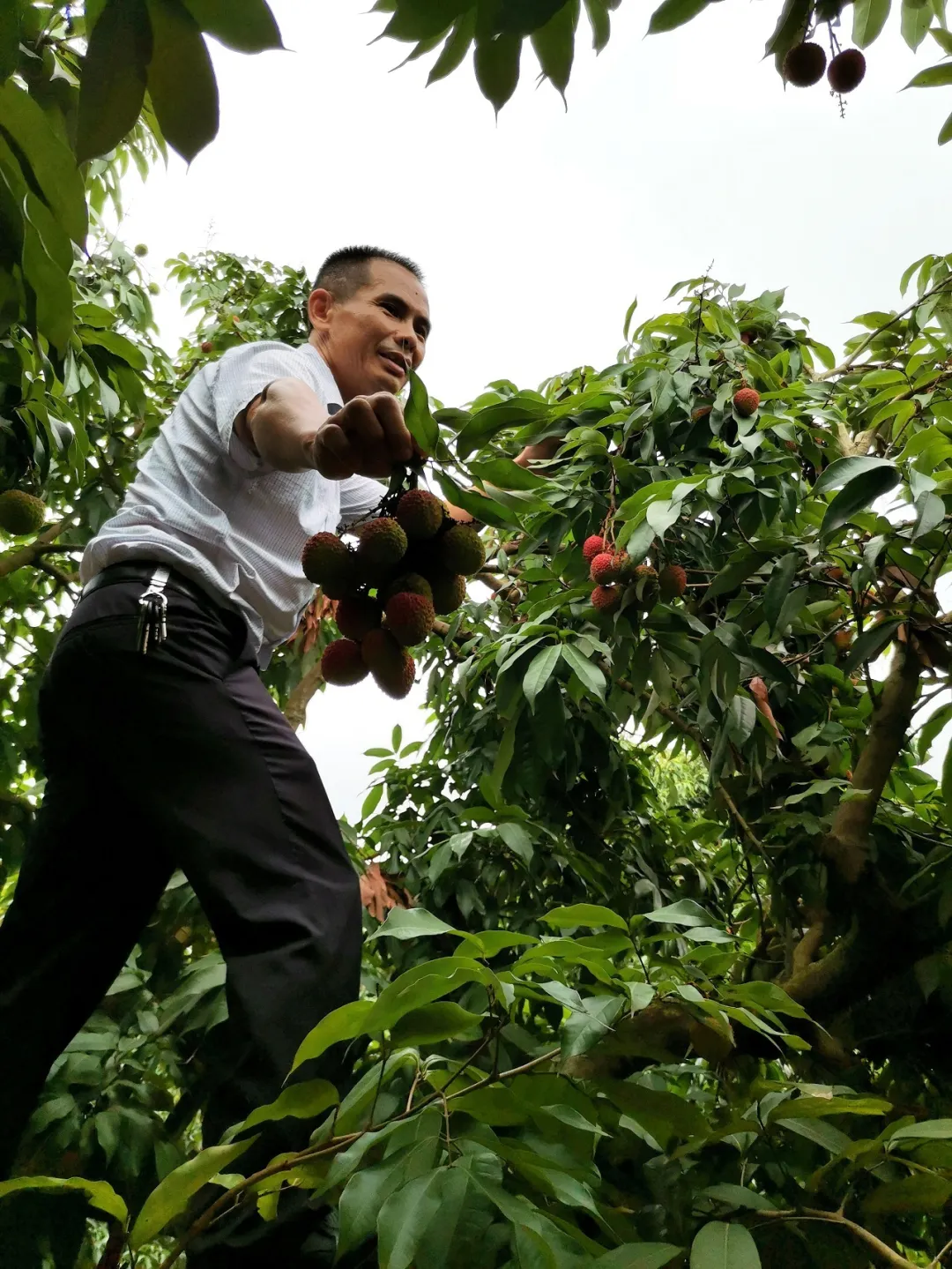 5月28日,西麗果場(chǎng)的種養(yǎng)專(zhuān)家邱金淡一早來(lái)到園區(qū),開(kāi)展病蟲(chóng)防治,清理荔枝樹(shù)上破裂的荔枝。前幾日,一場(chǎng)猛烈的龍舟雨,讓長(zhǎng)勢(shì)正旺的糯米糍遭受當(dāng)頭一擊,不少爆漿裂果。邱金淡在南山種植荔枝20多年,對(duì)各種“天災(zāi)意外”波瀾不驚,談起今年的收成,他苦笑著說(shuō),“種植就是看老天爺吃飯”。受雨水影響,糯米糍、桂味減產(chǎn)明顯。早熟品種妃子笑受影響較小,已由青轉(zhuǎn)紅成熟,開(kāi)始陸續(xù)上市。