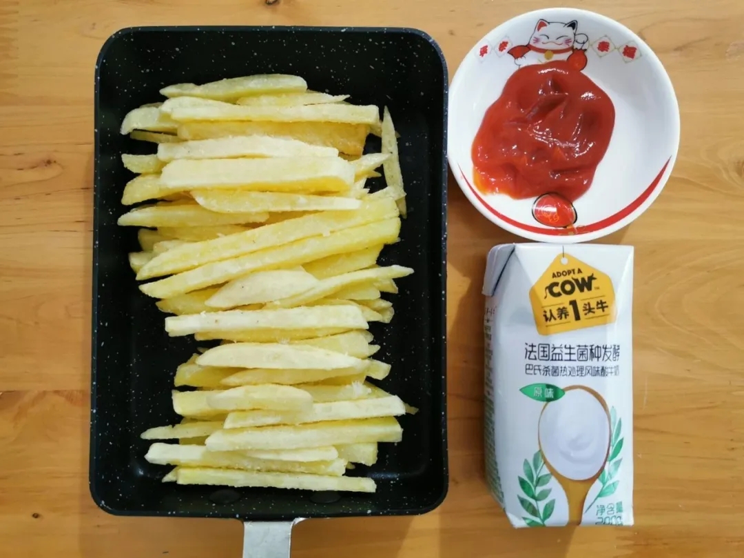 ▲小康最?lèi)?ài)的零食是媽媽親自炸的薯?xiàng)l配番茄醬。