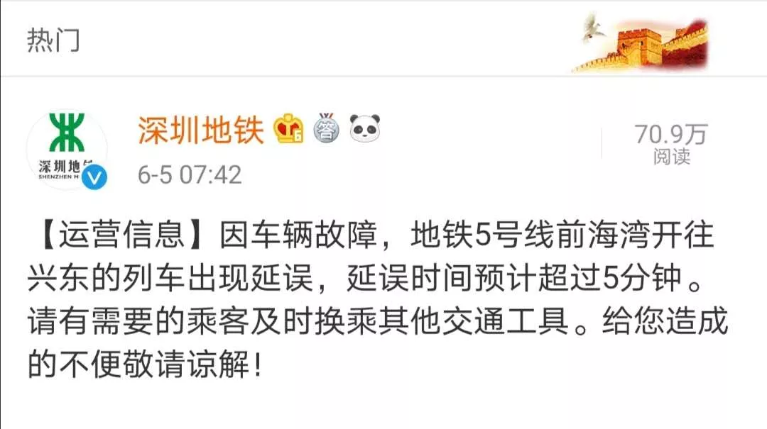 深圳地鐵官方微博發(fā)布公告: