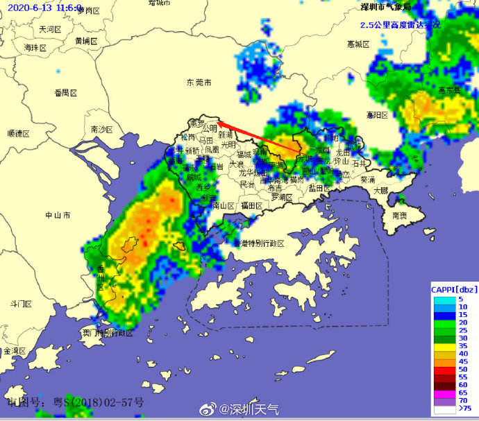 雷暴云團(tuán)已減弱,深圳市氣象臺(tái)于2020年06月13日12時(shí)30分在全市取消雷電預(yù)警。