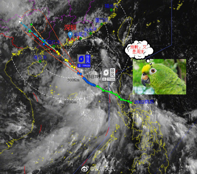 【臺(tái)風(fēng)“鸚鵡”將從深圳西南方150-250公里的海面上掠過】