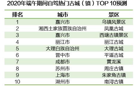 根據(jù)高德地圖交通大數(shù)據(jù)預(yù)測(cè),端午期間全國(guó)熱門自駕古城(鎮(zhèn))TOP10一半分布在長(zhǎng)三角區(qū)域,預(yù)計(jì)嘉興-烏鎮(zhèn)風(fēng)景名勝區(qū)自駕熱度最高,其次是湘西-鳳凰古城以及嘉興-西塘古鎮(zhèn)景區(qū)。