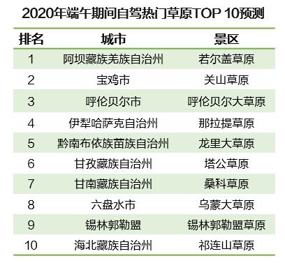 6月正是“草原游”較為適宜的時(shí)節(jié),廣袤的草原游可為這個(gè)夏天增添一絲清涼?!秷?bào)告》預(yù)測(cè),端午小長(zhǎng)假期間,全國(guó)熱門自駕草原TOP10主要分布在市郊,最熱門的是阿壩-若爾蓋草原,其次是寶雞-關(guān)山草原以及呼倫貝爾大草原。