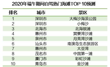《報(bào)告》預(yù)計(jì),端午期間全國(guó)自駕熱門海灘游TOP10主要集中在南部沿海地區(qū),其中珠三角占6席。熱門海灘游中的深圳-大梅沙海濱公園、小梅沙以及北海-北海銀灘,成為全國(guó)自駕熱門海灘景區(qū)三甲。