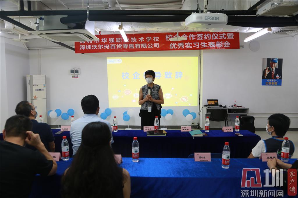 沃爾瑪是世界500強企業(yè),在深圳有30多家門店,6000多名員工。華強職校是國家中職示范校、國家級重點職校,曾入選中國職業(yè)教育百強校。沃爾瑪公司為華強職校學(xué)生提供了“老帶新”一對一現(xiàn)場培訓(xùn)、“沃課堂”線上課程等培訓(xùn)機會,并提供了充足的實習(xí)崗位。目前,學(xué)校共有102名學(xué)生在深圳沃爾瑪各門店實習(xí)。