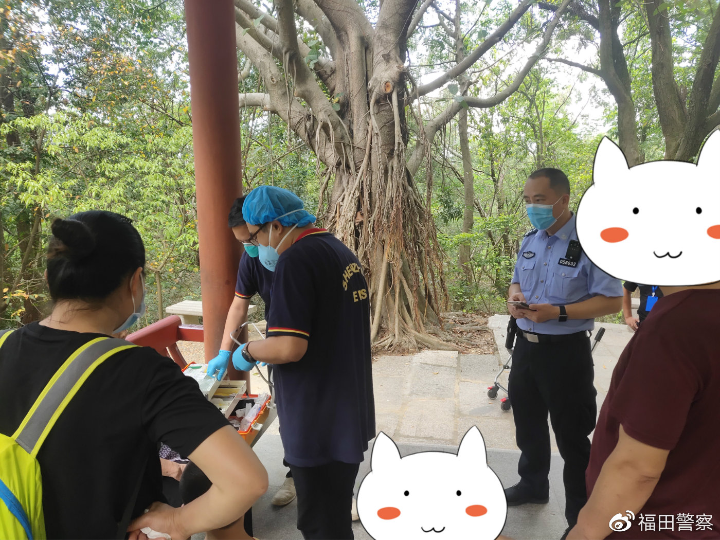 13時(shí)許,接派出所前臺(tái)指令,報(bào)稱(chēng)一老人身體不適請(qǐng)求幫助后,民警立即趕到現(xiàn)場(chǎng),協(xié)助120醫(yī)務(wù)人員進(jìn)行檢查。檢查完畢后,民警為老人遞上一杯水,并在確認(rèn)老人身體無(wú)礙后,將其護(hù)送下山。
