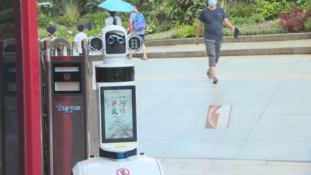 在蓮花山公園的南門口,安保人員戴著一頂智能頭盔,入園游客的體溫,可以實時顯示在眼前的屏幕上,一旦溫度達到37.3℃,就會發(fā)出警報。如果游客沒有戴口罩,門口的智能機器人也會提醒:“請您戴上口罩”。
