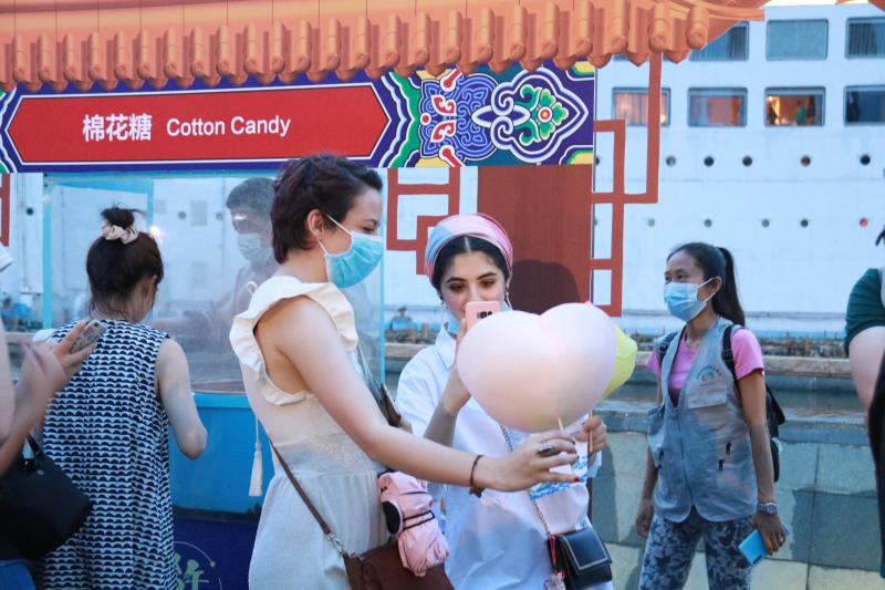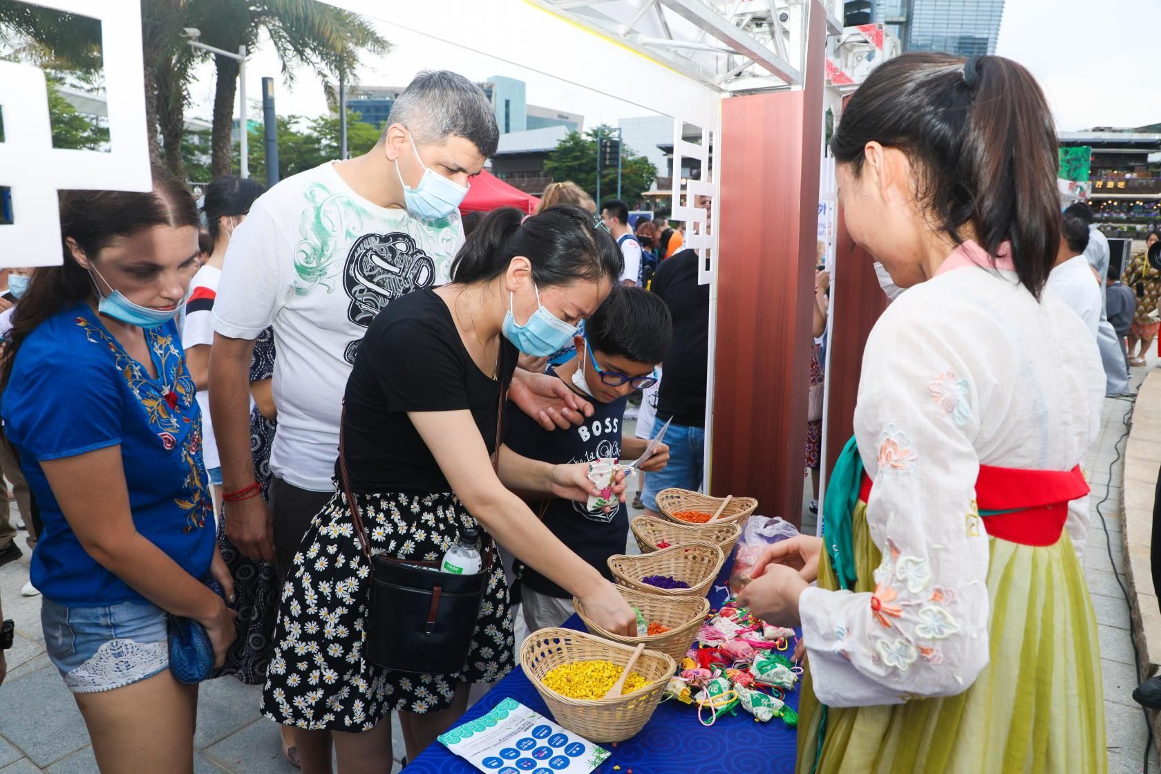 糖畫、捏面人、穿漢服……當(dāng)晚的海上世界廣場(chǎng)熱鬧祥和,約300人次中外居民歡聚一起,互致美好祝福,在感受中國傳統(tǒng)文化當(dāng)中共度端午佳節(jié)。